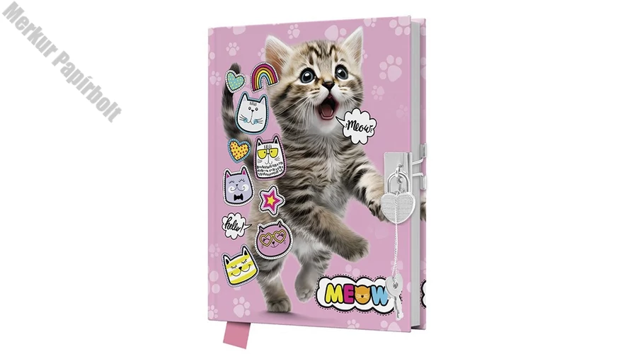 A5-ös méretű, keménytáblás, cérnafűzött emlékkönyv. Sima lapokkal, 80 lapos. Kétkulcsos szív alakú lakattal. Az emlékkönyv szalagos könyvjelzőt tartalmaz. Mérete: 14x18 cm