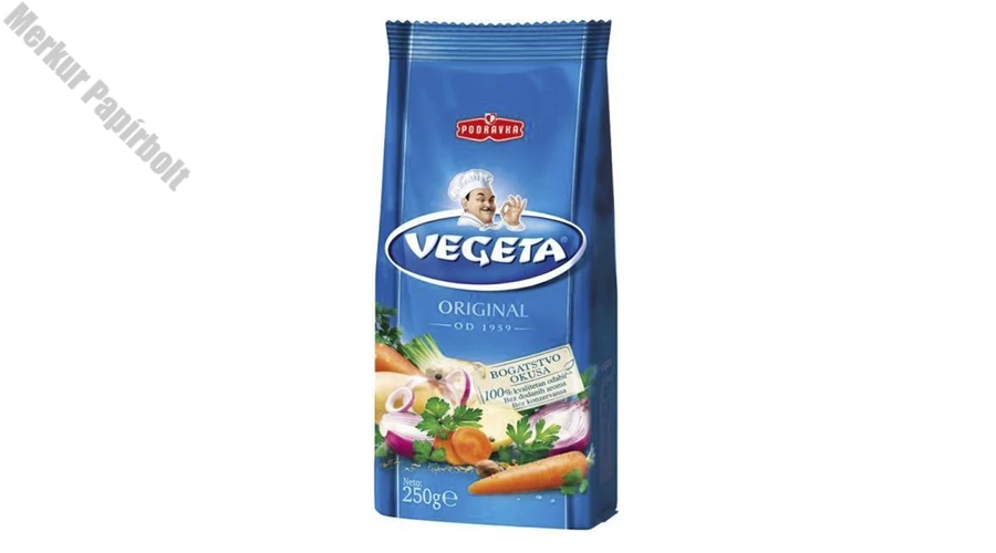 Jódozott étkezési só (étkezési só, kálium-jodát), Zöldségszárítmányok 15, 5% (sárgarépa, paszternák, burgonya, vöröshagyma, zeller, petrezselyemzöld), Ízfokozók (mononátrium-glutamát, dinátrium-inozinát), Cukor, Fűszerek, Kukoricakeményítő, Színezék (riboflavin)