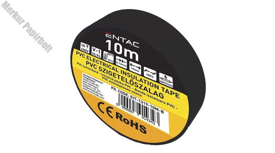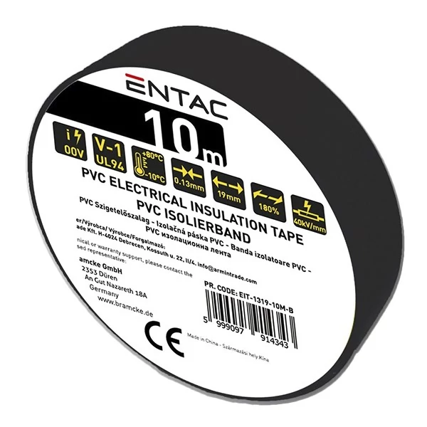 Szigetelőszalag ENTAC 19mmx10m fekete